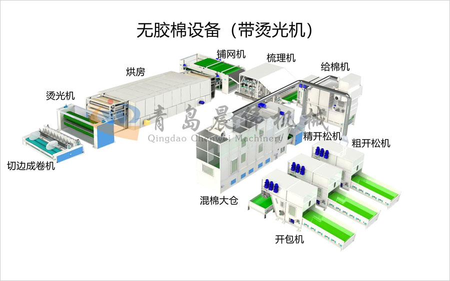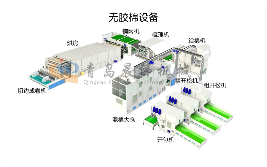 一、無膠棉設備工藝流程: