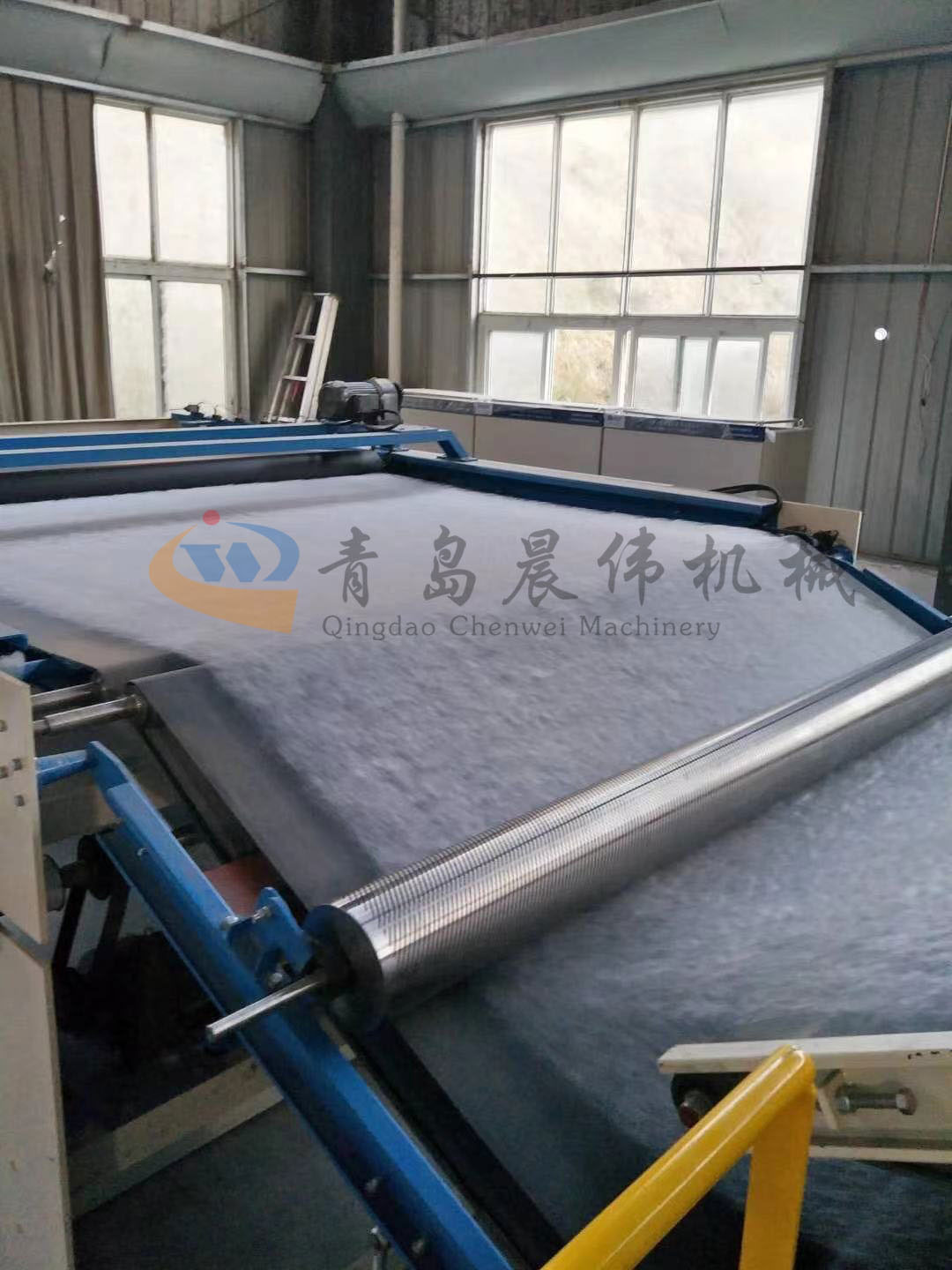 5. CWPW-鋪網機:用于將梳理纖網通過移動小車交叉折疊為所需幅寬和定量的多層纖網,以供后道工序使用。鋪網輥采用特殊結構,加裝壓網輥和導流板,不飄網不起皺,五只大功率電機精確控制各部件的運動,電動輸出簾高度調節(jié)裝置